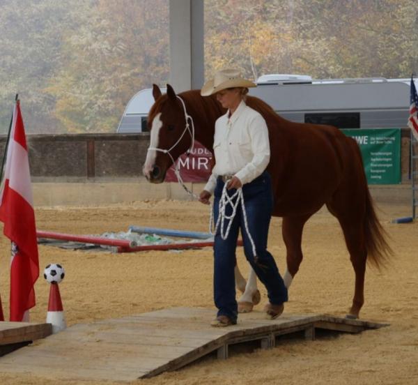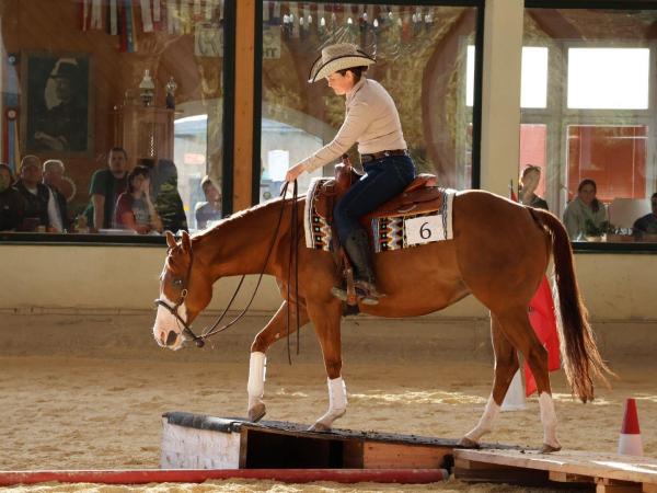 Mit einem eintägigen Turnier ist ihr nun eine weitere Steigerung gelungen. Der Extreme Trail richtet sich an ambitionierte Freizeitreiter und war für alle Reitweisen und alle Rassen offen. 23 Teilnehmerinnen und Teilnehmer sind angetreten, insgesamt gab es 37 Starts. Ina hat einen abwechslungsreichen Parcours entworfen, der von den Pferden ein hohes Maß an Desensibilisierung verlangte.