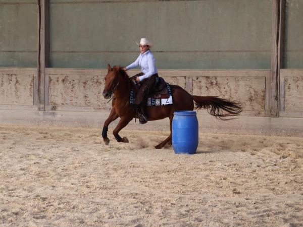 Der Bewerb Fortgeschrittene Erwachsene war am stärksten besetzt. Trotz des organisatorischen Stresses fand Hausherrin Lisa Schlatter Zeit, selbst mit Spooks Gotta Deal an den Start zu gehen. Das Duo zeigte den Trail in Vollendung – in schöner Versammlung, ohne Zögern und ohne eine einzige Stange zu berühren. Besonders beeindruckend waren die weichen Übergänge, die der Richter mit einem Score von 77 honorierte – dem höchsten Score des Tages.