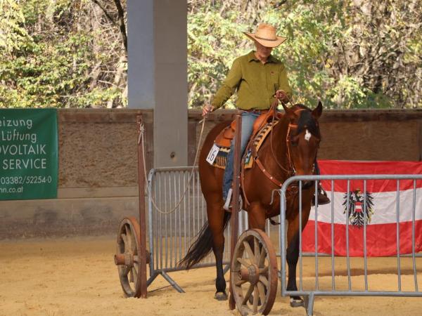 Der letzte Bewerb des Tages, der Speed Trail Erwachsene, war ein wahrer Zuschauermagnet. Trotz starker männlicher Konkurrenz war die schnellste Reiterin eine Frau: Sabine Herz mit Captain Delmaso freute sich sehr über ihren Sieg.