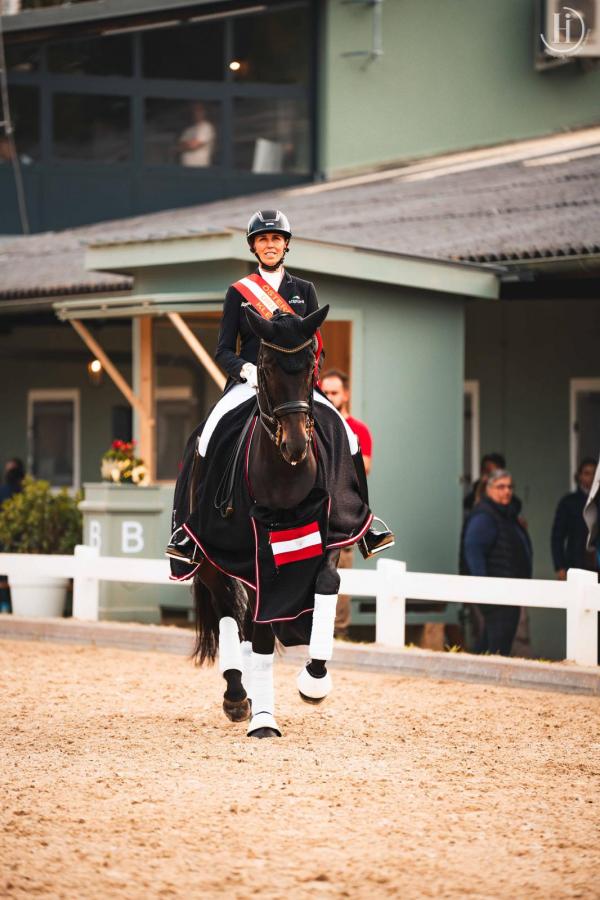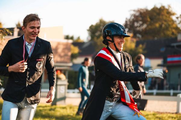 Belinda Weinbauer vom Reitsportzentrum Pannonia in Sieggraben sicherte sich mit ihrer Stute Aurelia OLD den Titel in der Kleinen Tour. Die routinierte Reiterin präsentierte sich das gesamte Wochenende über in Bestform: Schon im Einlaufbewerb, einer Intermediaire I, setzte sie sich mit 68,772 Prozentpunkten an die Spitze. Im ersten Teilbewerb, dem Prix St. Georg, überzeugte sie mit einer ausdrucksstarken Runde und gewann mit 71,272 Prozent. Auch im entscheidenden zweiten Teilbewerb, einer weiteren Intermediaire I, ließ sie mit 71,491 Prozent nichts anbrennen und holte damit überlegen Gold in der ÖM Dressur Kleine Tour. Belinda Weinbauer holte damit bereits zum dritten Mal in Folge die Goldmedaille in der Kleinen Tour und unterstrich einmal mehr ihre beeindruckende Konstanz auf höchstem Niveau.