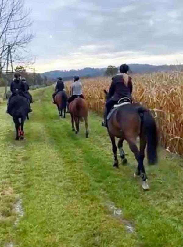 Die gleichen Strecken wurden auch zurück geritten. An den nächsten zwei Tagen drehte sich der Abritt im Uhrzeigersinn. So war es möglich, in kleinen Gruppen die bezaubernden Herbsttage auf den Rücken der Pferde zu genießen.